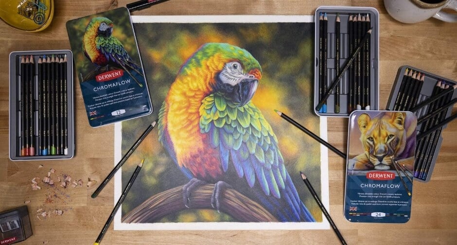 Derwent Chromaflow pencils have been formulated with rich pigments to deliver a bold, vibrant laydown. Premium core strength pencils that handle pressure when sharpening and in use.